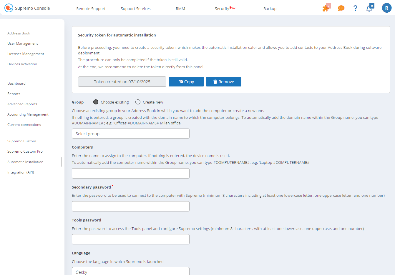 Vytvořte vlastní verze Supremo s přednastavenými politikami a vašim brandingem. Distribuujte zákazníkům již nakonfigurované klienty - eliminujete chyby a zrychlíte onboarding.